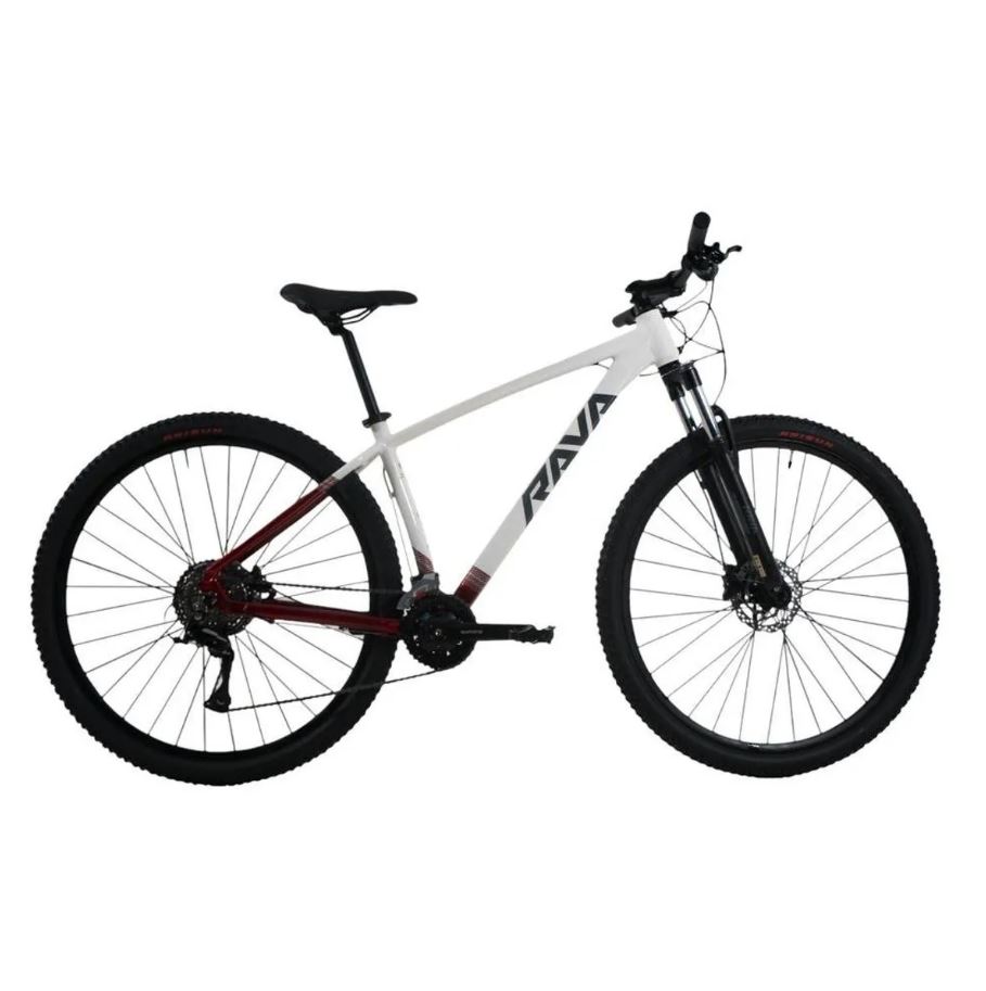 A Bicicleta Rava Rakan 29" 16V é uma mountain bike com quadro em alumínio 6061, cabeamento interno e componentes Shimano, ideal para trilhas e uso recreativo. Destaca-se pelo grupo de transmissão de 16 marchas, freios hidráulicos Shimano MT200 e suspensão com trava remota. A cor Violeta está disponível com componentes X-Time.