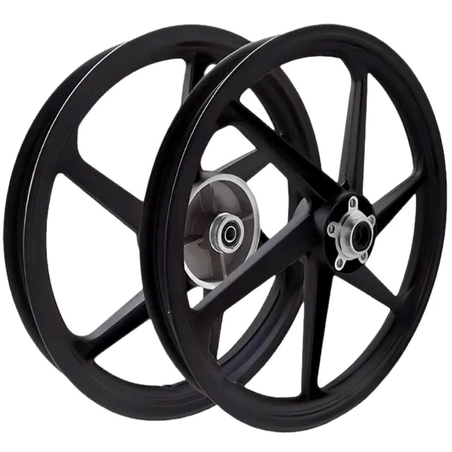O Aro de Liga Leve BHD (6 pontas, preto) é ideal para Titan 150 (14-15) e 160 ESD (15-24), com freio a disco dianteiro. Produzido em alumínio de alta resistência (injetado), inclui rolamentos e é voltado para uso urbano, substituindo as rodas originais por um estilo esportivo. O diâmetro é de 17 ou 18 polegadas, dependendo da variação.