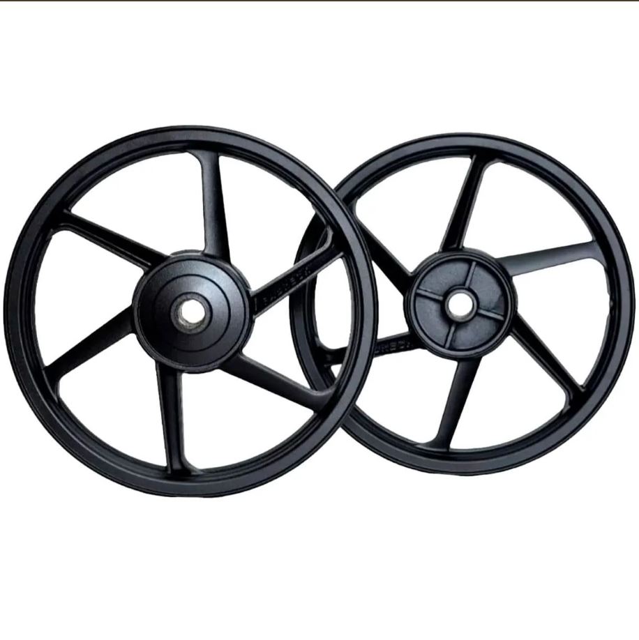 O par de rodas de liga leve BHD (modelo 6 pontas/palitos, cor preta) é compatível com Honda Titan 150 (2004-2013) e Start 160 (freio a tambor/lona). Fabricadas em alumínio injetado, oferecem alta resistência, compatibilidade com pneus com ou sem câmara e vêm prontas para montagem com rolamentos e retentores.