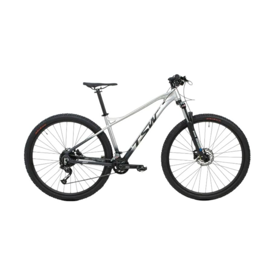 A Bicicleta TSW Stamina Plus 18V (aro 29, cor cinza) é uma mountain bike de alumínio 6061 com cabeamento interno e componentes Shimano Alivio (2x9 velocidades), ideal para trilhas leves a intermediárias. Possui suspensão dianteira SR Suntour com trava, freios hidráulicos Shimano MT200 e suporta até 120 kg.