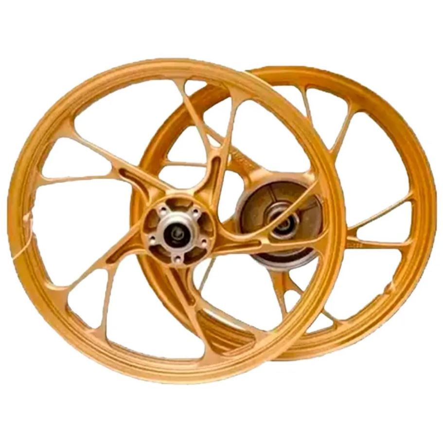O par de rodas de liga leve BHD/modelo Pé de Galinha para Titan 160 (2015-2024) é produzido em alumínio de alta resistência, cor preta, com design de 5 pontas. Compatível com freio a disco dianteiro, o kit inclui rolamentos e espaçadores, com aros 18x1.60 (dianteiro) e 18x1.85 (traseiro), permitindo uso com ou sem câmara.