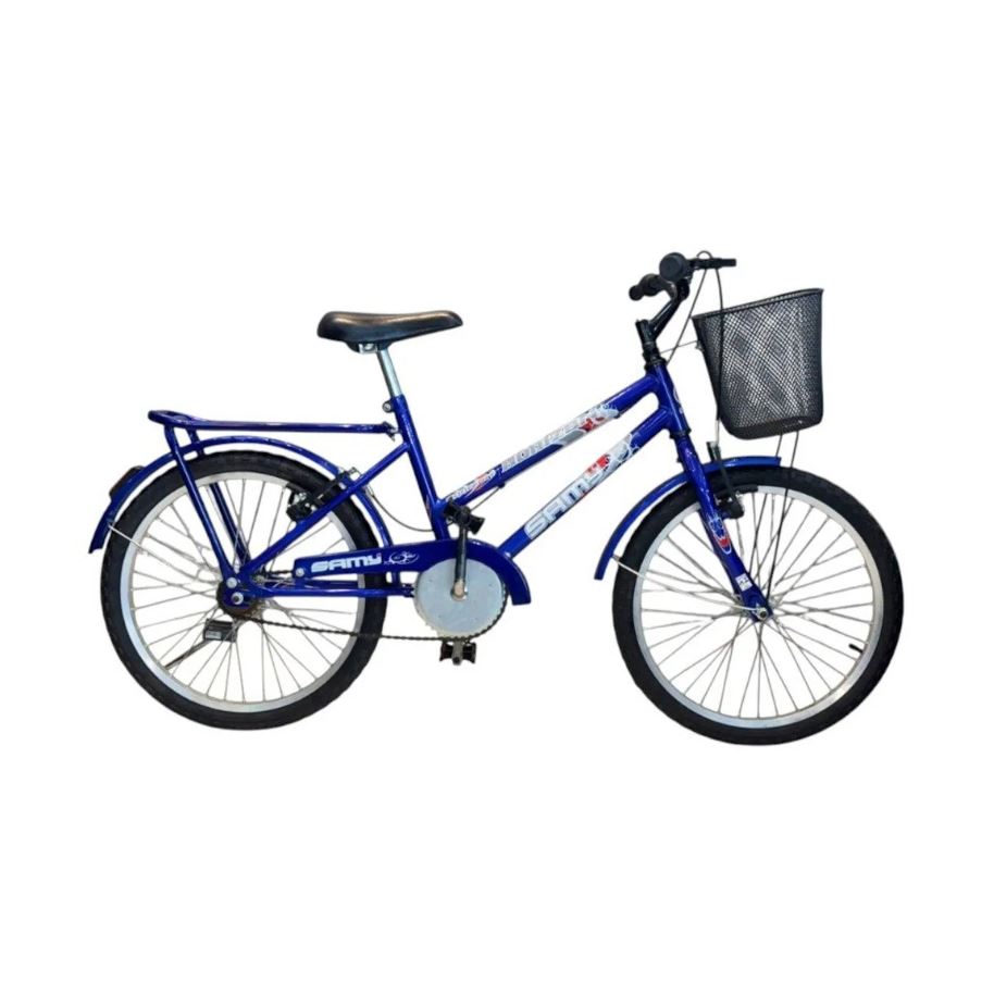 A Bicicleta Samy Aro 20 Lady Azul é um modelo infantil feminino, ideal para crianças a partir de 7 anos, com foco em conforto e segurança para passeios. Possui quadro em aço carbono, freios V-Brake, cestinha e paralamas, sendo uma opção popular com design retrô.